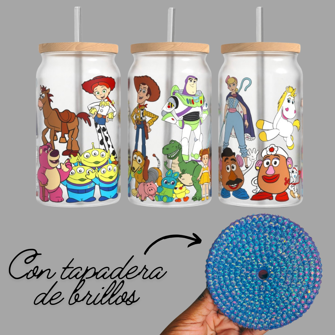 Vaso sublimado con pajita y tapa de bambú con brillos