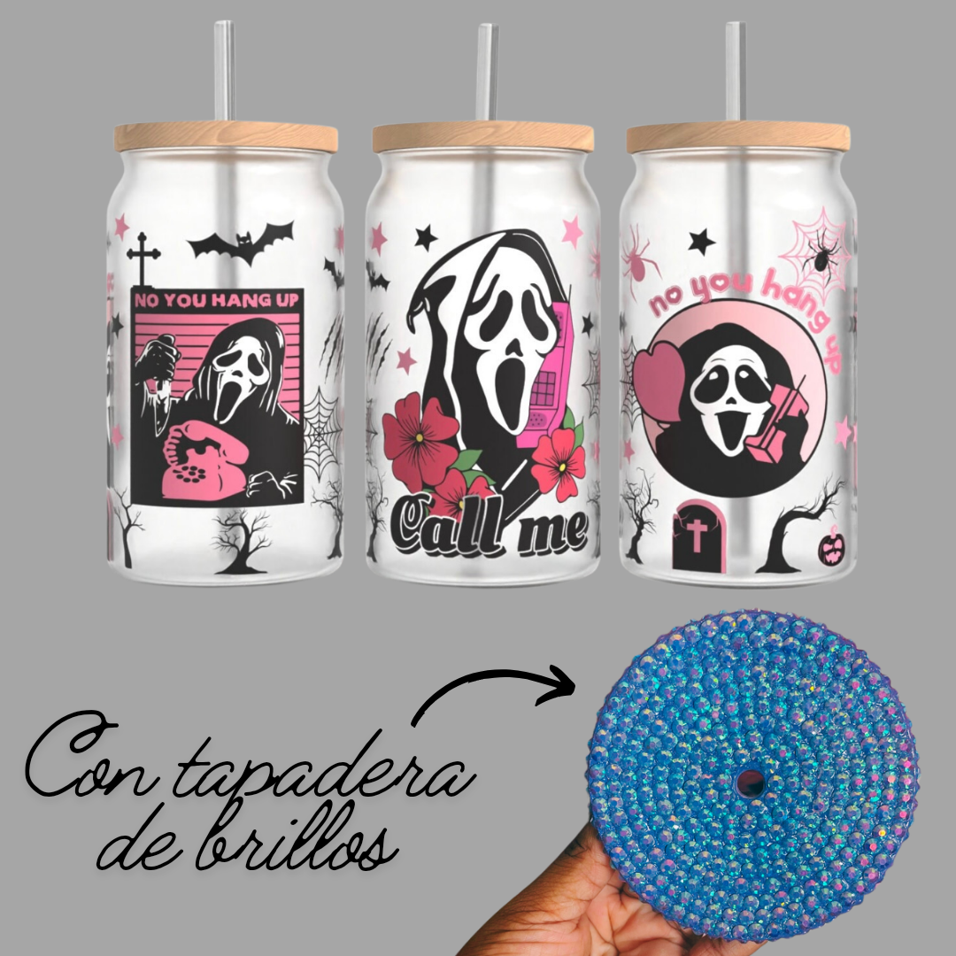 Vaso sublimado con pajita y tapa de bambú con brillos