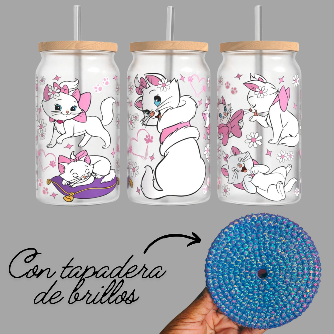 Vaso sublimado con pajita y tapa de bambú con brillos