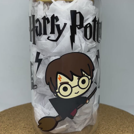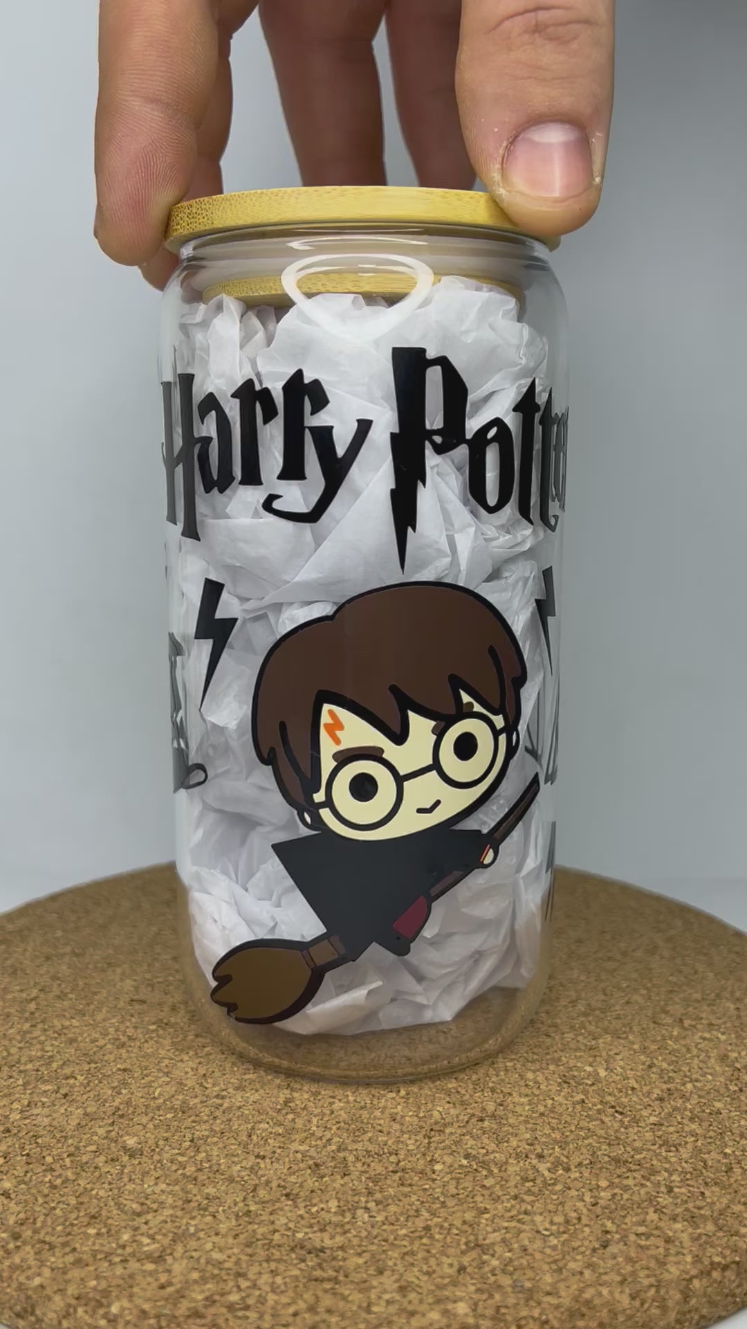 Vaso vinilado con pajita de cristal y tapa de bambú